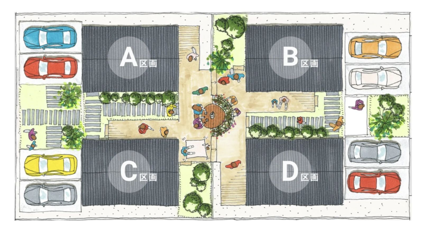 エンジョイヴィレッジは、連続した敷地の一部をシェアして暮らす、ユニークな宅地分譲プロジェクト。公園のような広場、緑豊かな環境、家の中から見える風景。同時に暮らしはじめるみなさんと、心地よい住環境をつくり育てていきます。